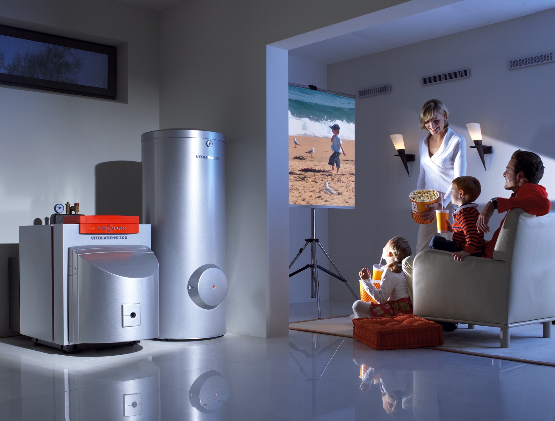 Принцип работы теплоаккумулятора (буферной ёмкости) основан на использовании высокой теплоёмкости воды. Так, например 1 литр воды, остыв на 1°C, может нагреть 1м³ воздуха на 4°C.